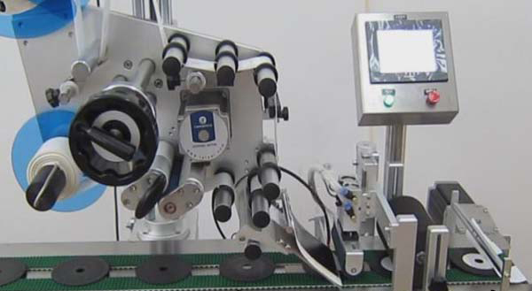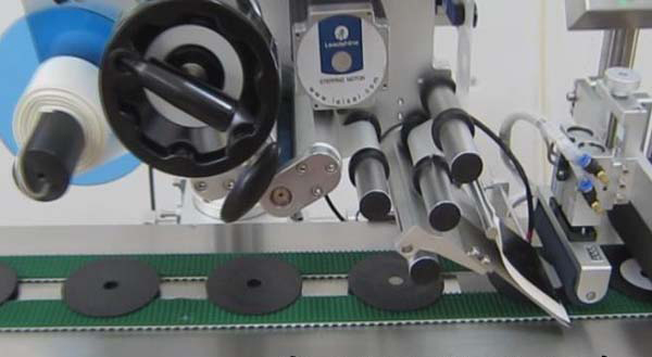 上圖這張圖片是已經(jīng)被送到貼標頭的位置了.而且正在貼不干膠.下面來張更具體一點的