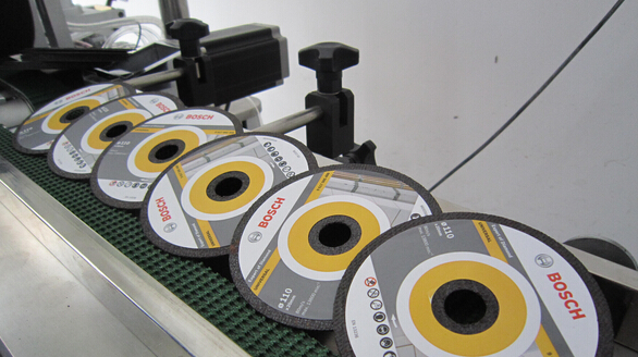 上圖的這個(gè)產(chǎn)品是我公司貼標(biāo)機(jī)系列下專用貼標(biāo)機(jī)系列下的全自動(dòng)砂輪片專用貼標(biāo)機(jī)對(duì)砂輪片進(jìn)行貼標(biāo)的樣品圖片.這張圖片是在產(chǎn)品上面時(shí)行拍攝的.背景中的設(shè)備便是我公司的全自動(dòng)砂輪片專用貼標(biāo)機(jī)了.