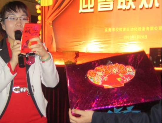 沒抽到獎品的人,著實讓人著急。不用但心,中獎率是80%。更重要的是還有額外禮品。手表、音響、電飯煲、購物卡、豆?jié){機。還有主持人現(xiàn)場從各位領導錢包里掏出的紅包哦。