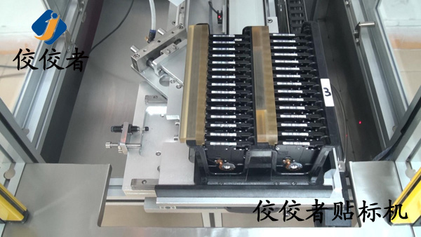 上圖展示的是硬盤貼標(biāo)機(jī)已經(jīng)將硬盤放入治具中并移動(dòng)到治具臺(tái)準(zhǔn)備貼標(biāo),下一步就是貼標(biāo)了,如下圖: